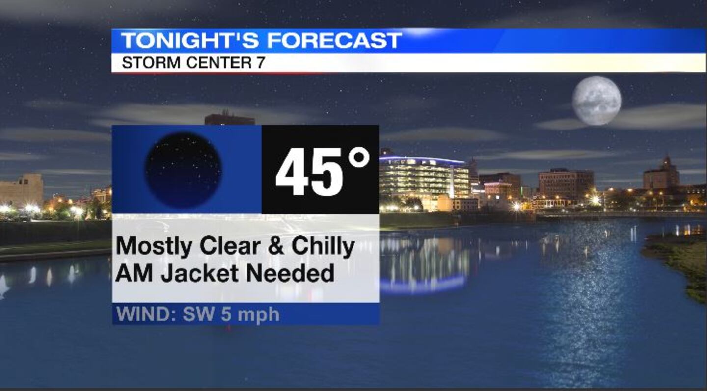 MONDAY: Clear skies and chilly temperatures for tonight. Cooling through the 60s this evening with an overnight low in the middle 40s.