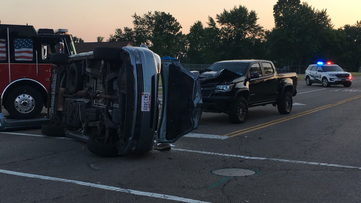 The vehicles involved in the crash reported around 8:15 p.m. included a pickup truck, car and minivan, which was on its side.