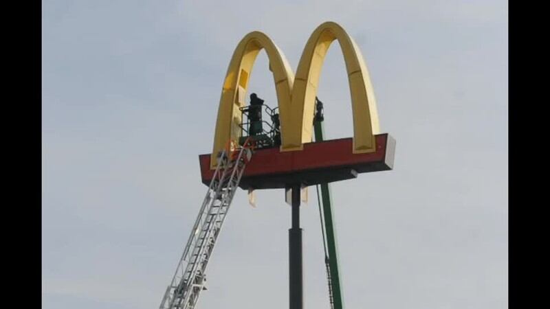 Firefighters were dispatched at 2:19 p.m. Wednesday to the McDonald’s on Commerce Drive after receiving reports that a man working on the sign was stuck on top of it.