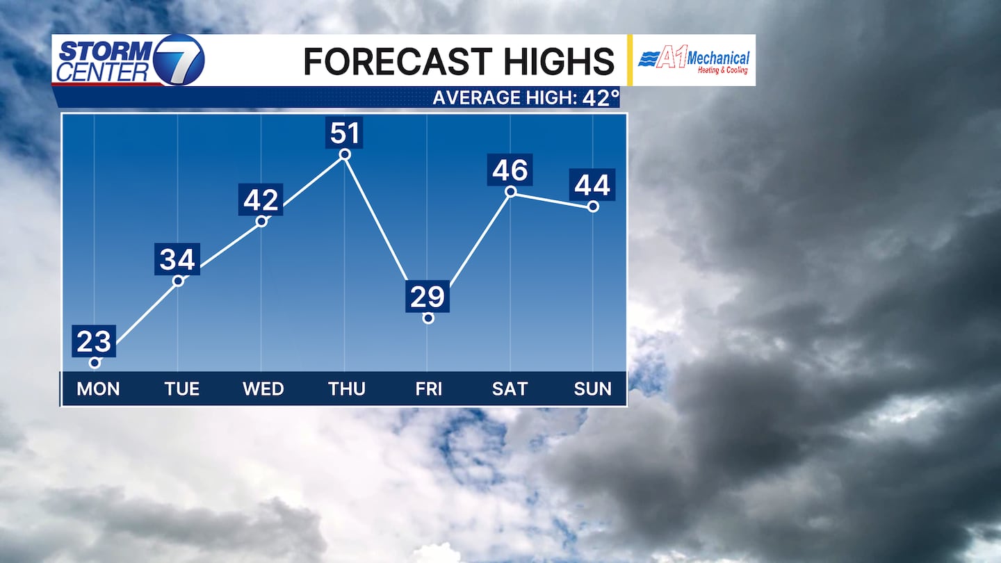 We have a solid thawing out period ahead for us as highs climb by 10 or so degrees each day through Thursday! That snow will become a distant memory by then!
