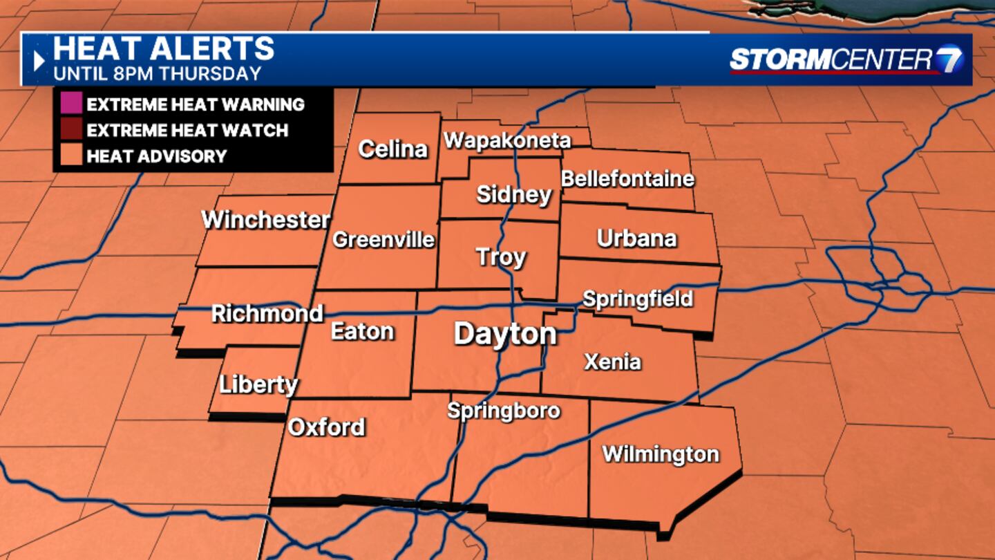 A Heat Advisory will be in effect for the whole area starting Thursday at 11 a.m.