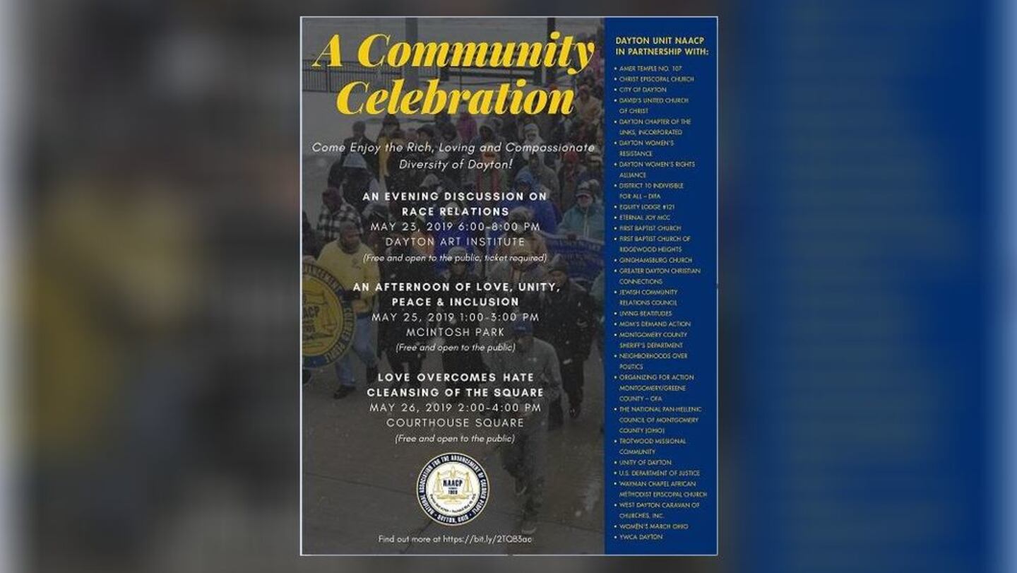 The Dayton Unit NAACP is planning a three-day community celebration as a mass response to the Ku Klux Klan group from Indiana that is scheduled to rally at Courthouse Square on May 25.