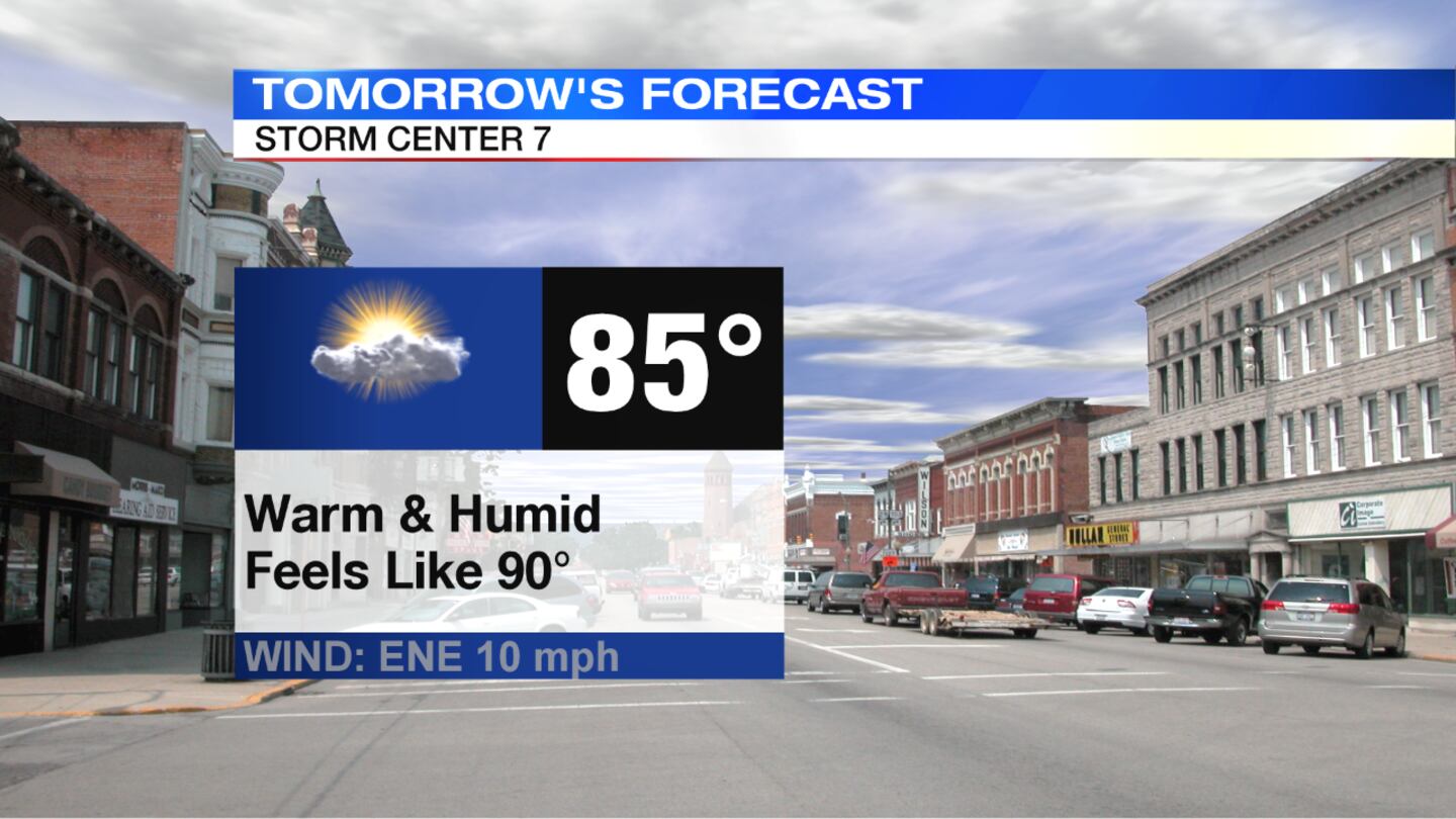 Wednesday: Partly sunny skies, warm and muggy with highs in the lower 80s.