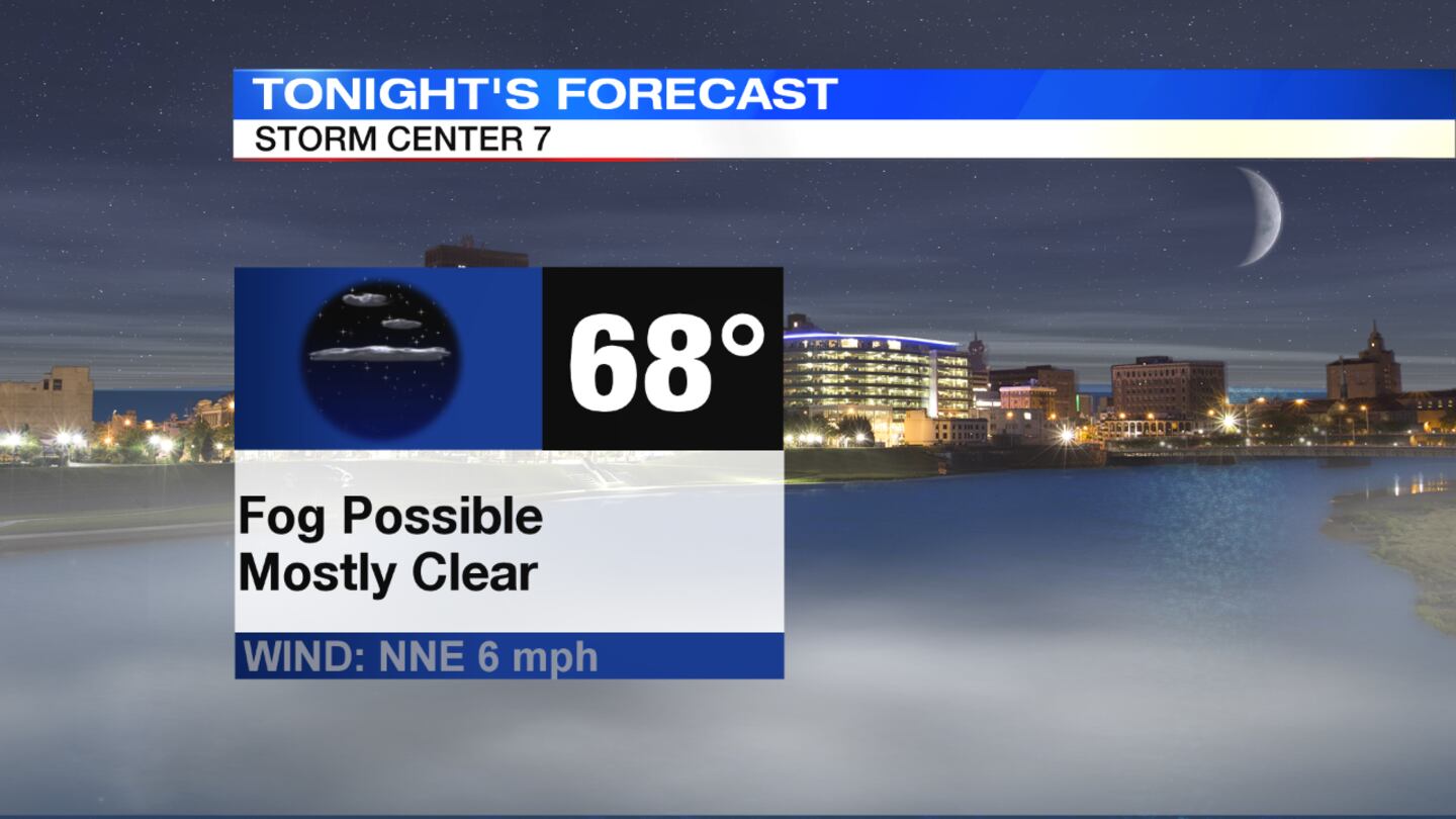 Overnight: Skies will be generally clear with temperatures falling into the upper 60s. Some patchy areas of fog will be possible.