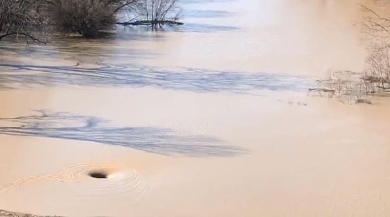The cause of the large circulation is due to a drainage tunnel covered by high water from the recent heavy rainfall. Storm Center 7 Chief Meteorologist Eric Elwell said that while it is certainly strange to look at, it is pretty normal in this area when the water runs high.