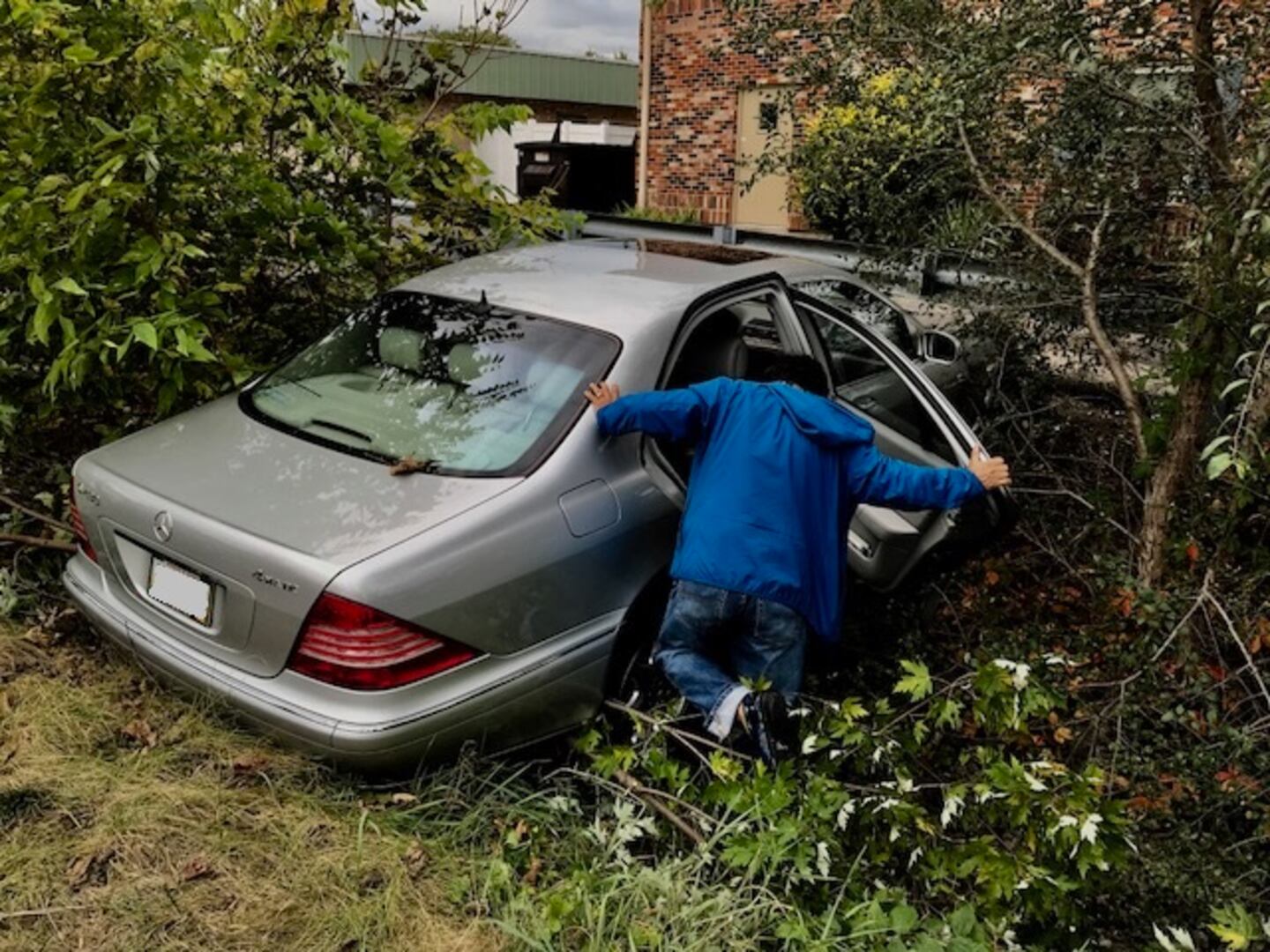 CENTERVILLE — A car came to rest in a ditch this afternoon after a woman driving the car apparently lost control at Mike’s Carwash.