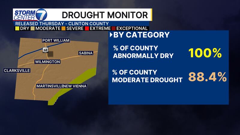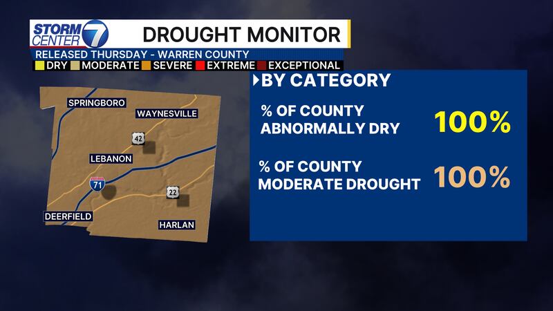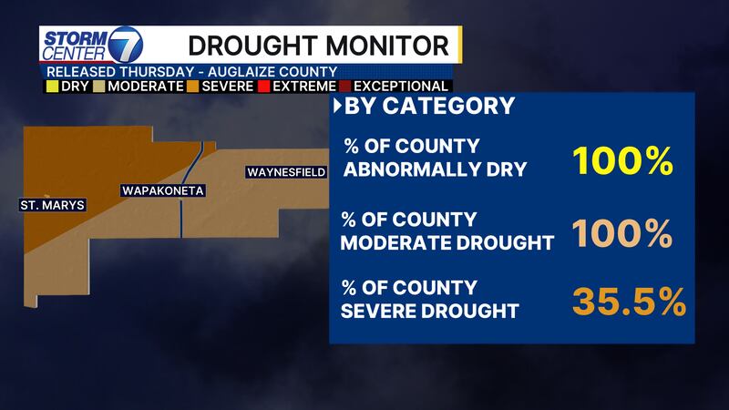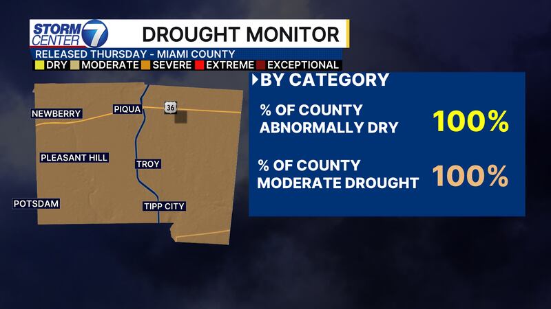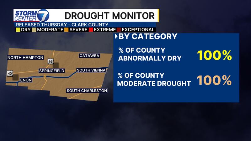 DAYTON — Happy Thursday, everyone! Weather Specialist nick Dunn here to break down the numbers when it comes to our ongoing drought. Despite the recent rainfall, the latest conditions remain unchanged for most, but some actually saw further degradation into the Severe Drought category.