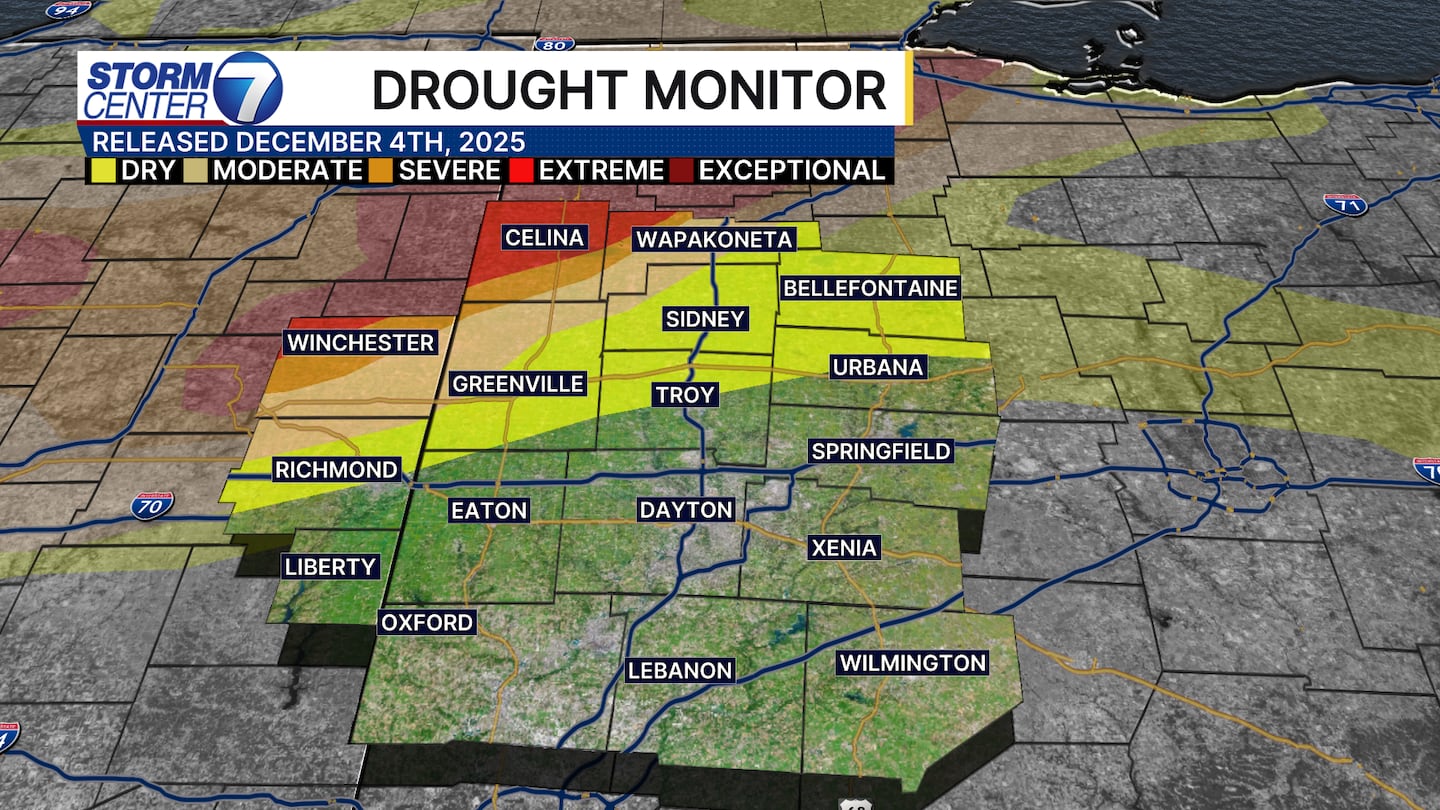 DAYTON — Hello, everyone! Meteorologist Nick Dunn here to give an update on the drought conditions in the Miami Valley. We have not talked about it for a bit, but we still are navigating some intense drought conditions in the region.
