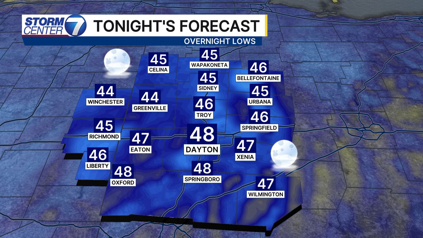 DAYTON — Good Saturday evening, everyone! After a cloudy start it was great to see the sunshine and I hope your weekend is off to a great start! Once the sun goes down tonight, you will get a chance to see the nearly full moon and we cool off into the 40s for a low.