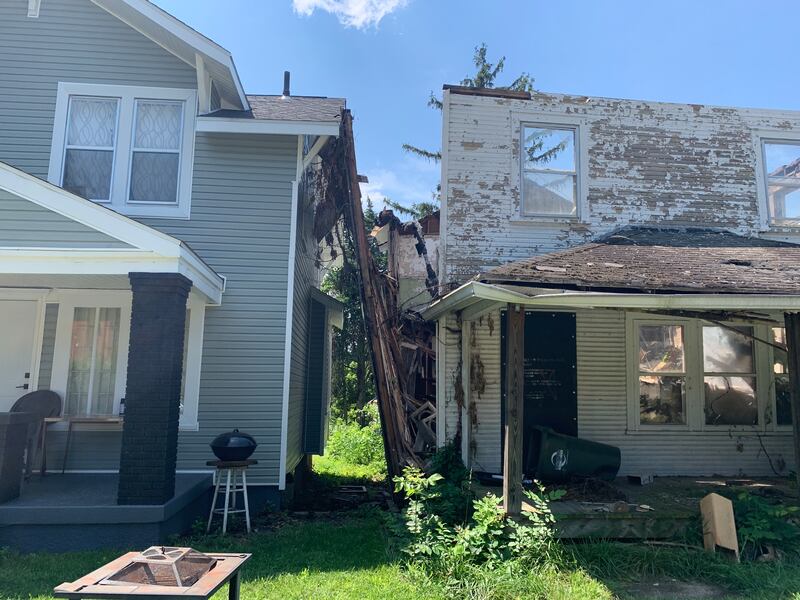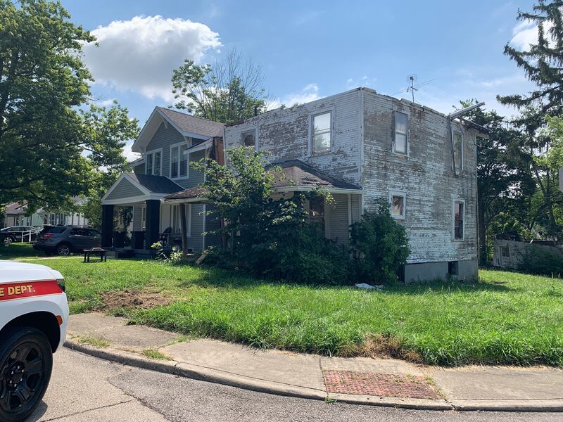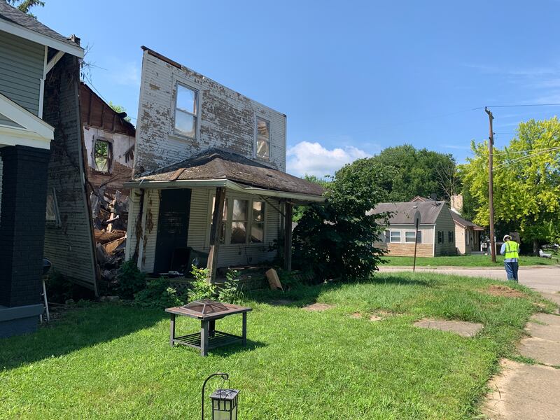“And both of the roof and the second floor went straight to the first floor. In the process, it pushed out the left side wall into the house next door,” District Chief Chris Kinzler of the Dayton Fire Department said.