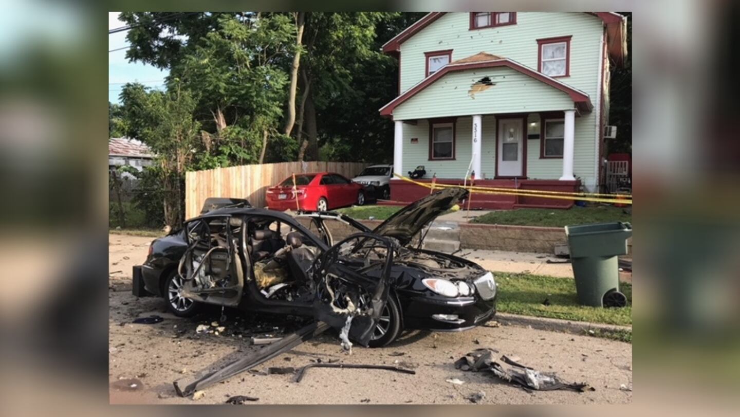 The blast sent the car’s sunroof into the second story of a nearby home.