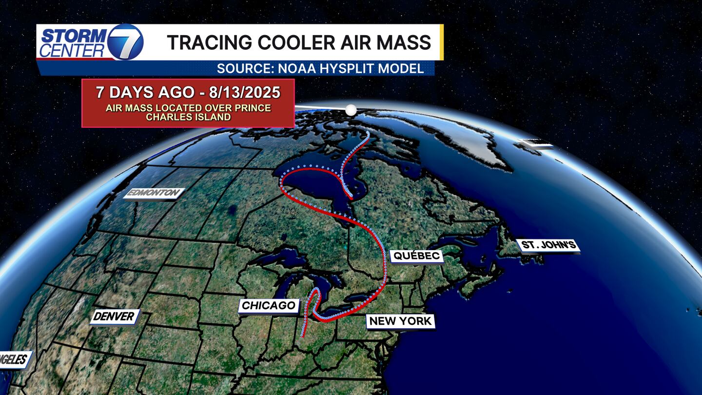 No matter what the weather is, we have the ability to trace the air mass to where it was about a week ago! So, while we had been experiencing above normal temperatures, you may wonder where did today’s cooler air originate from? The short answer is Canada...but how did we figure that out?