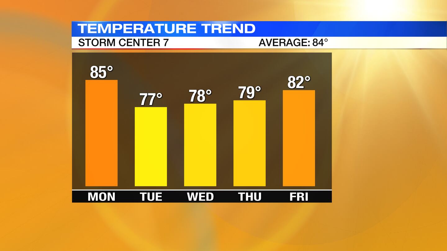 FRIDAY: Mostly sunny with seasonably warm temperatures. Highs in the low to mid 80s.