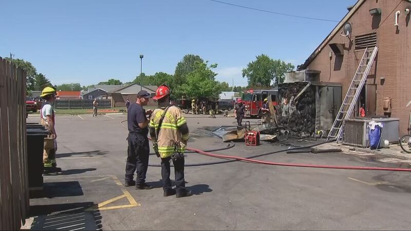 Firefighters were called to Los Mariachis of Detroit Street around 2:10 p.m. on reports of a dumpster fire. When they got to the scene, crews found that the fire was against the building, according to Xenia Fire Chief Ken Riggsby.