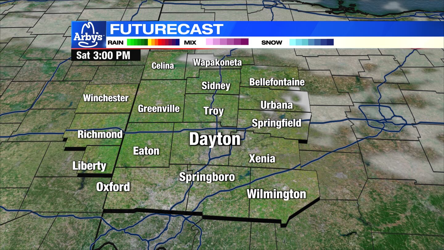 SUNDAY: A cold start in the middle 20s. Cloudy with spotty rain and snow showers through the day and night. Highs in the upper 30s. No accumulation expected.