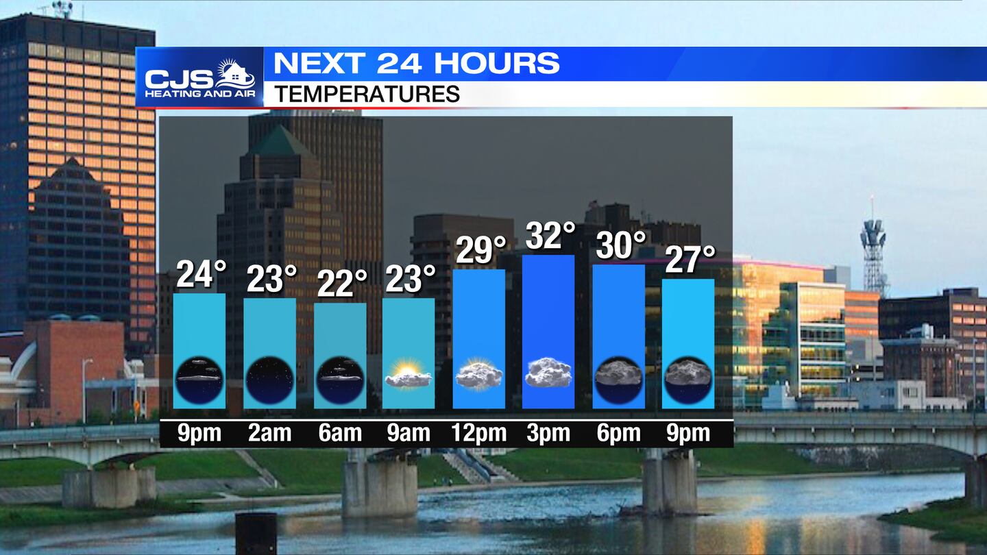TUESDAY: Partly sunny on Tuesday with some increasing clouds later in the day. Staying cold with high temperatures in the upper 30s.