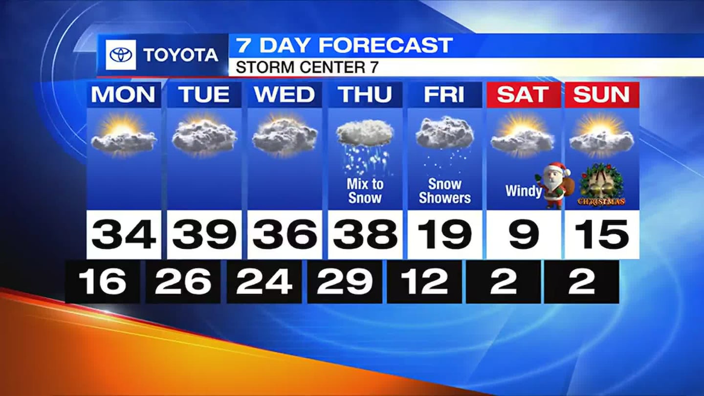 CHRISTMAS DAY: Partly cloudy with highs in the mid teens and lows in the low single digits.