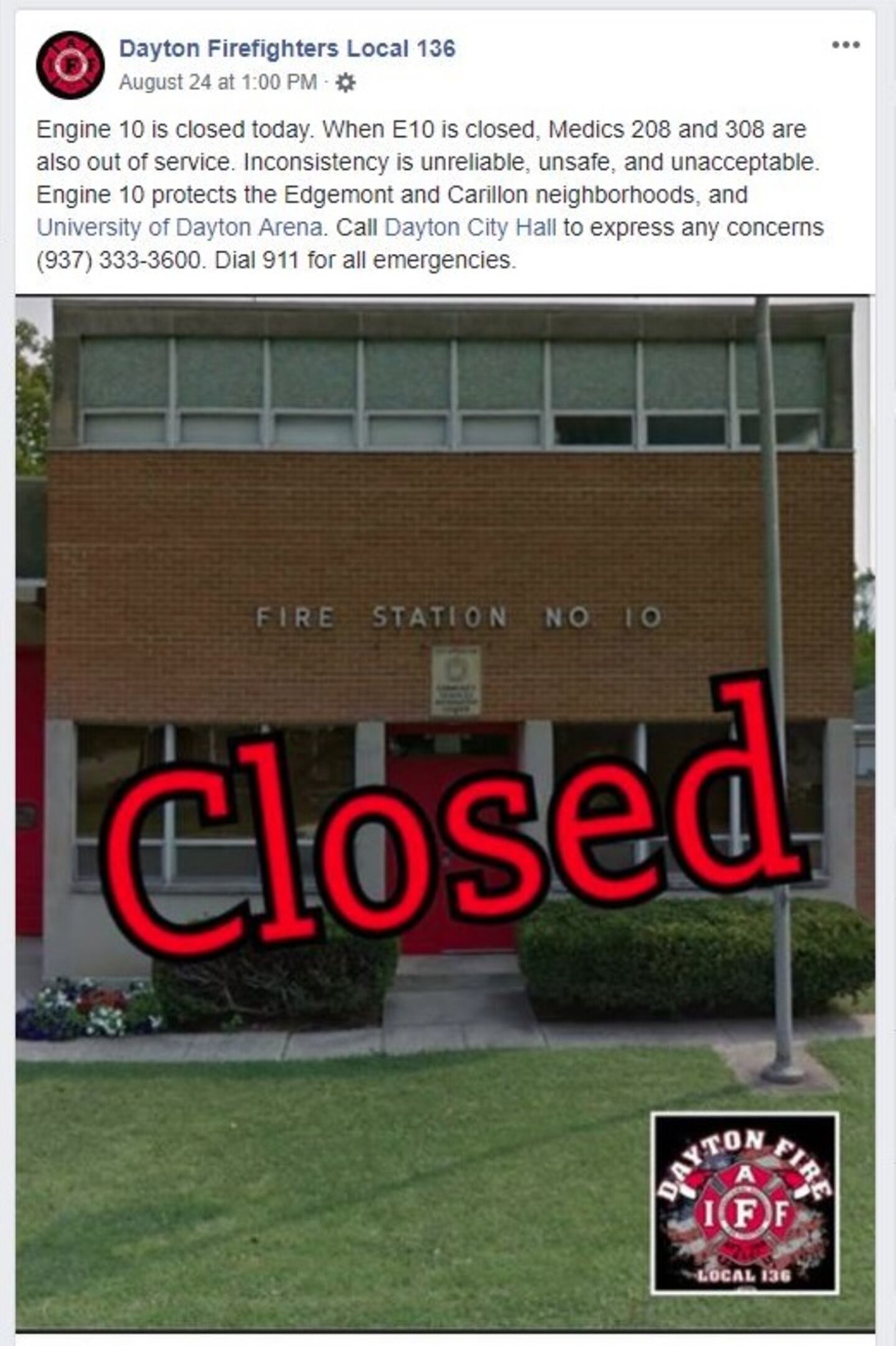 International Association of Fire Fighters Local 136 posted on its Facebook page Friday that “inconsistency is unreliable, unsafe and unacceptable” and urged people to call Dayton’s City Hall.