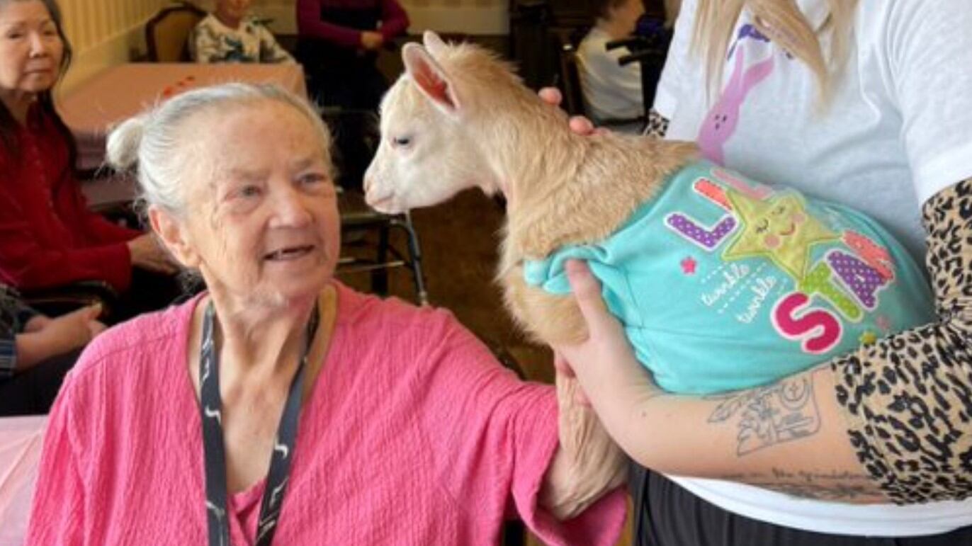 The goats are part of pet therapy with Goat Country and bring love and calmness to seniors.
