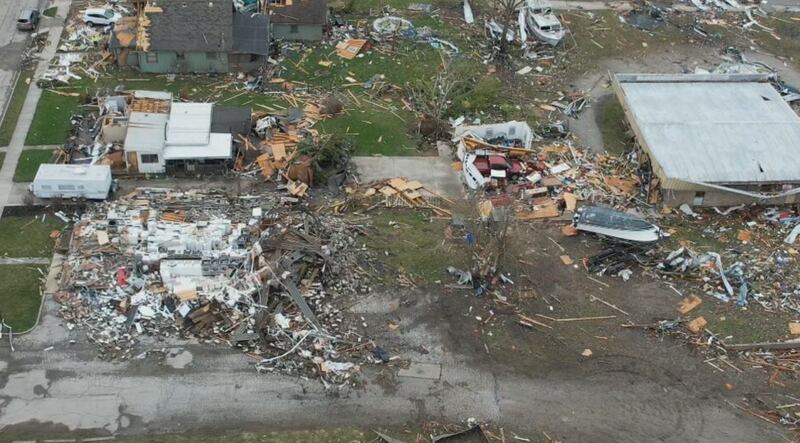 Sky 7 drone shows devastation in Logan County (Eric Higgenbotham)