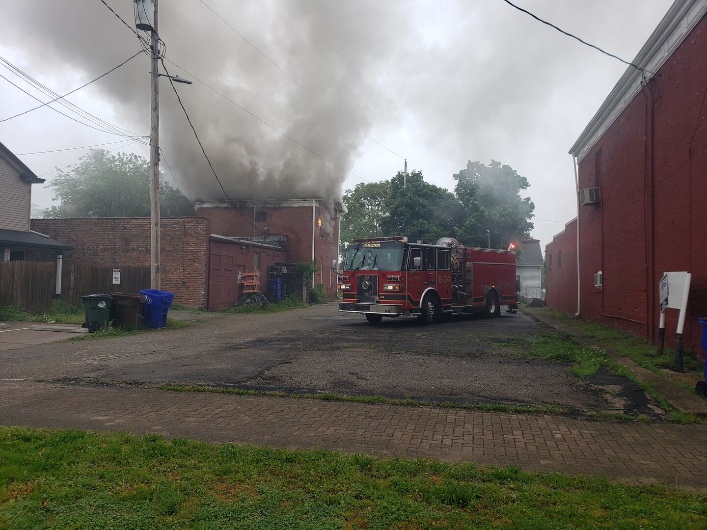Firefighters from Liberty and Fairfield townships assisted Hamilton fireghters in putting the fire out and keep from damaging the Dabbelt’s Groceries & Meats market next door.