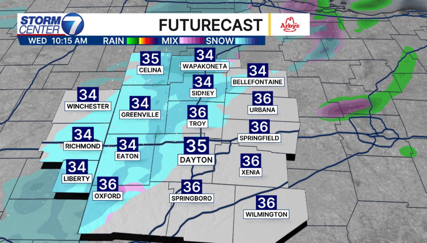 Ritz says temperatures are expected to be in the mid-40s to start, but will fall through the 30s during the afternoon.