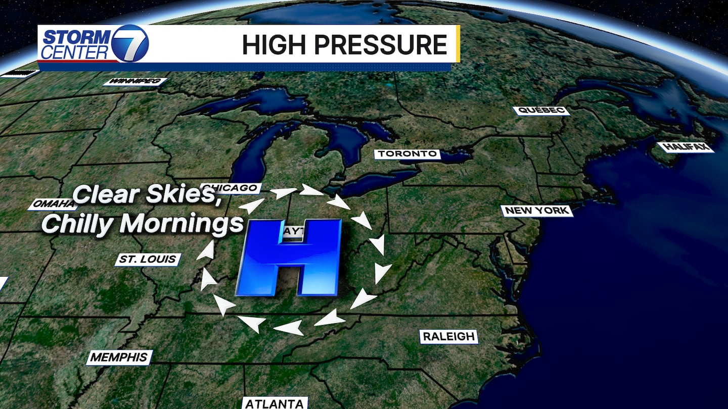 DAYTON — High pressure gives us the sinking air with clear skies, but it’s also fluctuating our temperatures. Hey, it’s Storm Center 7 Meteorologist Ryan Marando.