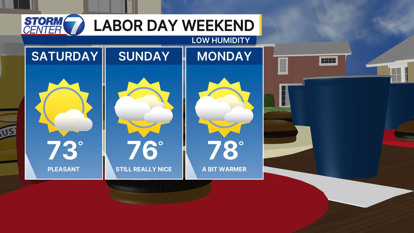 Highs will slowly warm a bit by the time we reach Labor Day, but the trend will be for highs to stay 5-10 degrees below normal through the weekend.