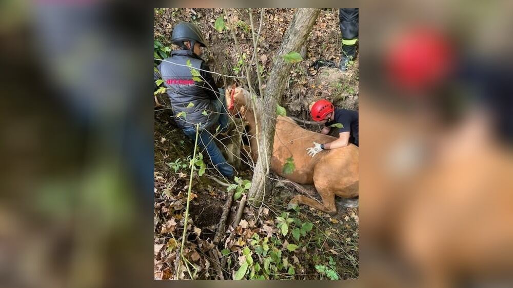 Firefighters from the Hinckley Ohio Firefighters Association, which is in Medina County, were called to help with a horse that was stuck in a ditch near a park trail.