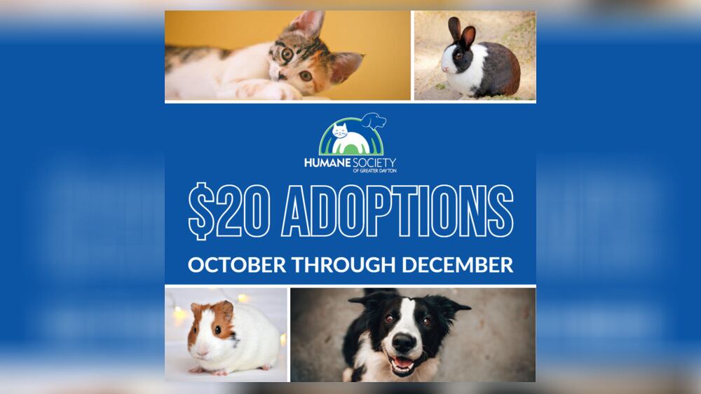 The Humane Society of Greater Dayton is offering discount adoptions through the end of the year.