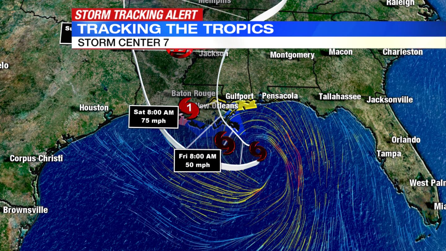 This storm is expected to intensify into a Category 1 hurricane before making landfall along the Gulf Coast by the weekend. At this point the center of the storm is projected to pass over areas just south of Lake Charles, Louisiana, sometime Saturday afternoon, but storm impacts will be felt before then.