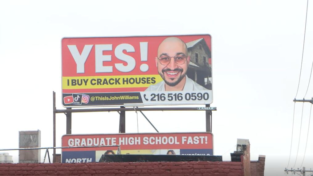 “Why he picked, ‘Yes, I buy crack houses,’ We don’t know. But it’s in poor taste,” a neighbor to the billboard near West 78th Street and Lorain Avenue said.
