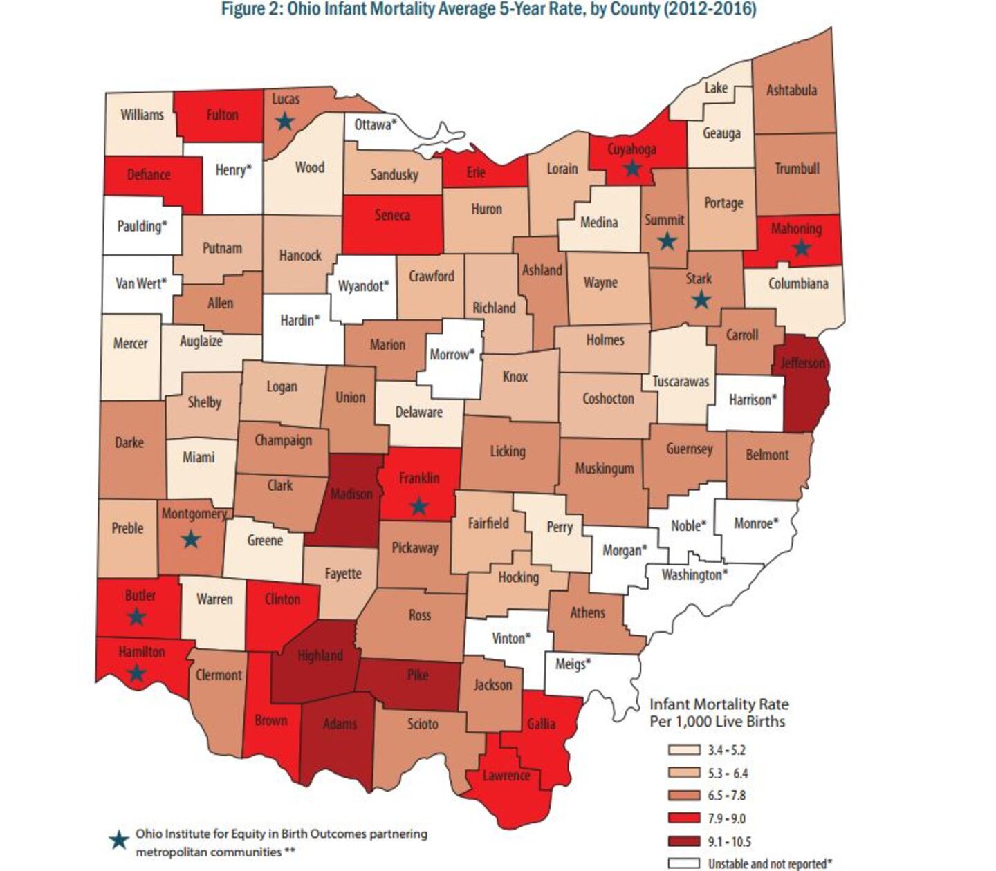 There were 45 infant deaths in 2016, the most recent statistic available from the Ohio Department of Health. The leading causes of infant deaths are premature births, birth defects and sleep practices.