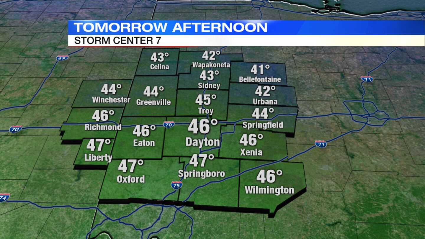 WEDNESDAY: Clouds will be on the increase through the day with a chance for showers by late afternoon. It will also become windy and milder with highs reaching into the lower 60s.
