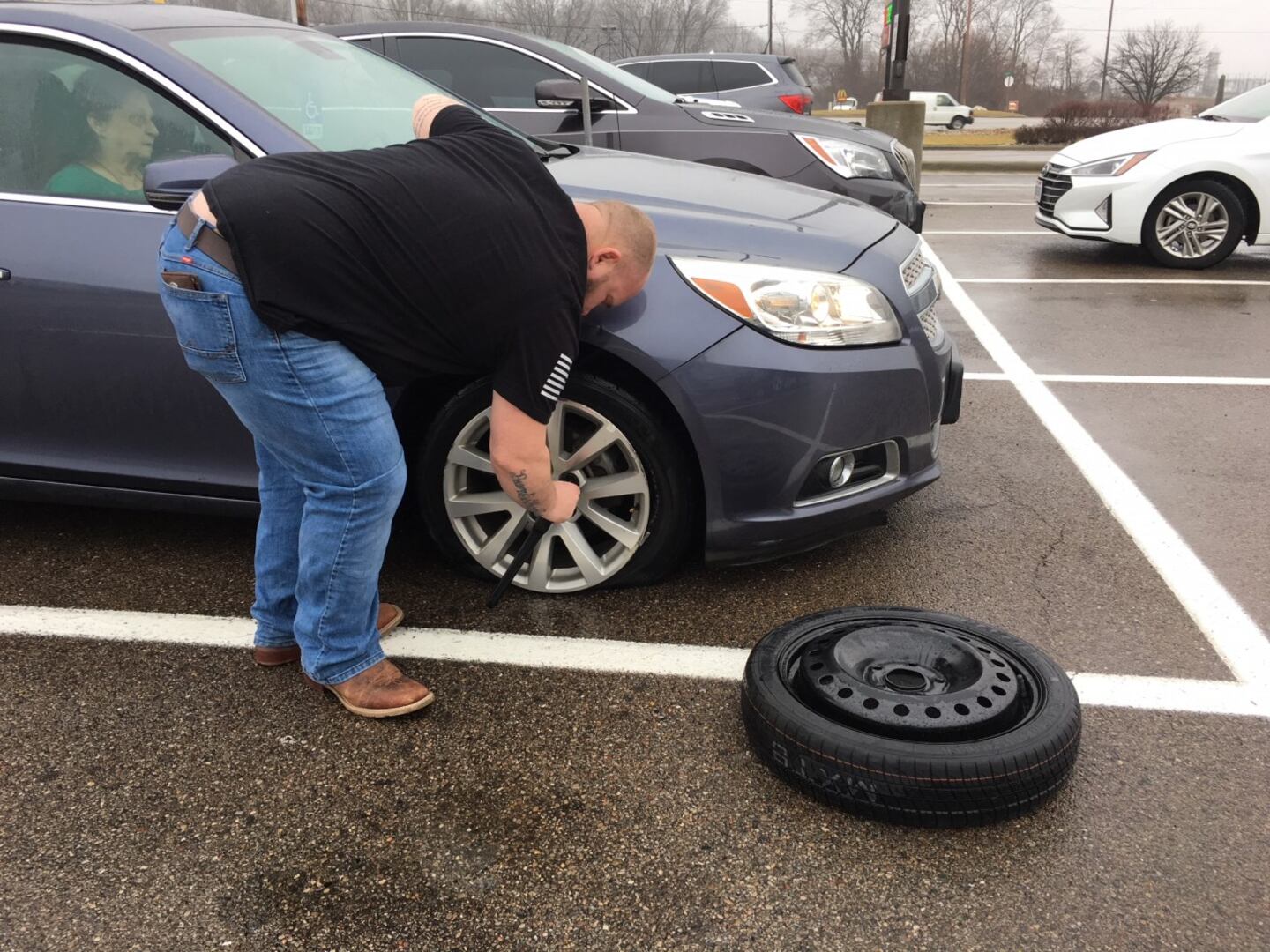 Several motorists pulled off the highway to change flat tires after hitting the pothole.