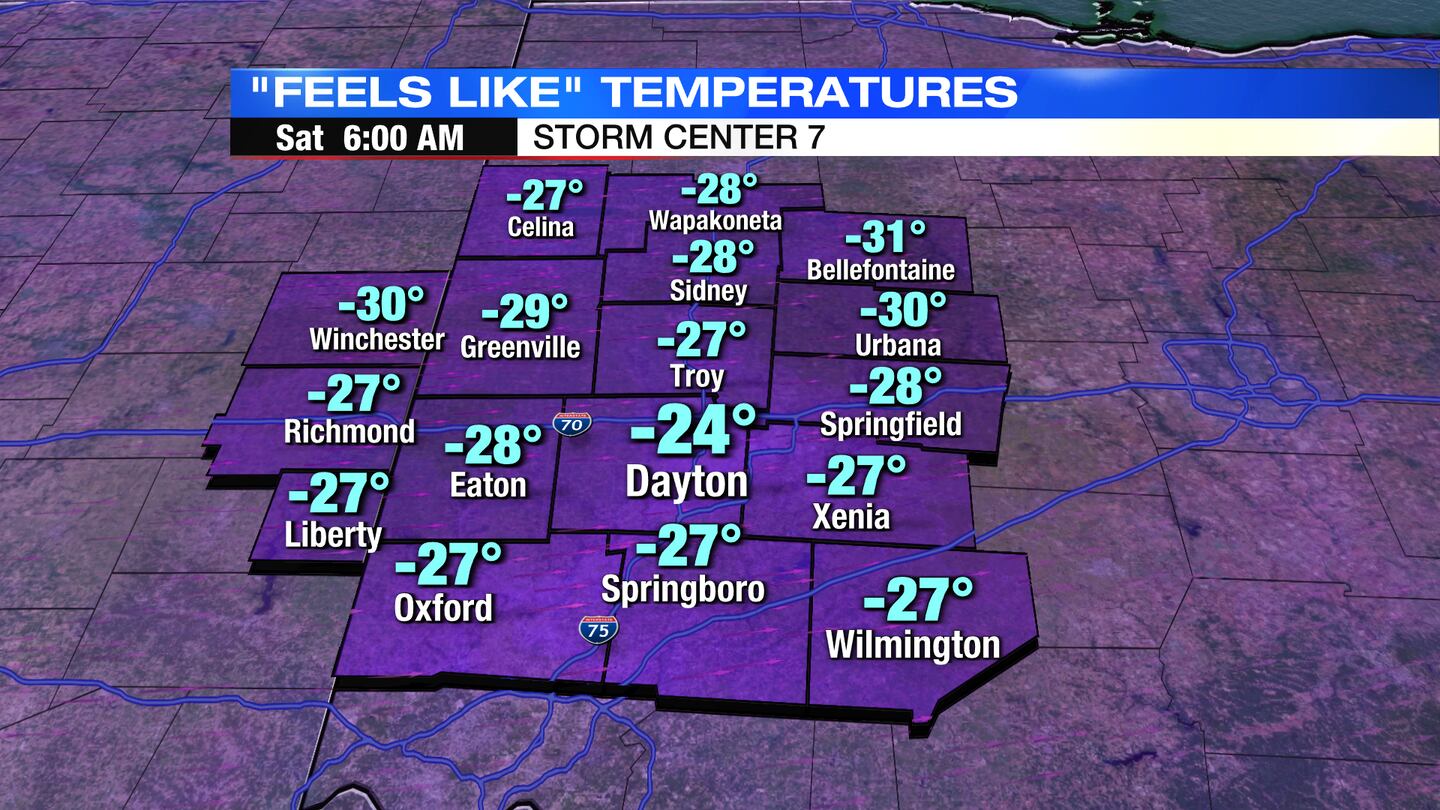 A Wind Chill Warning is in effect until 7 a.m. Saturday for Auglaize, Champaign, Darke, Logan, Mercer Miami and Shelby counties.
