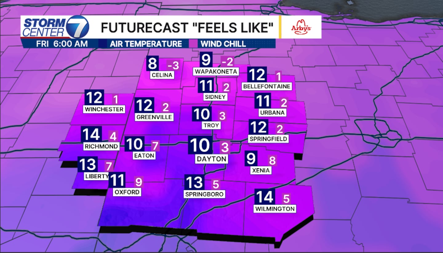 “Lows in the rural areas will drop into the single digits. The Dayton metro will be nearing 10 degrees,” said Ritz.