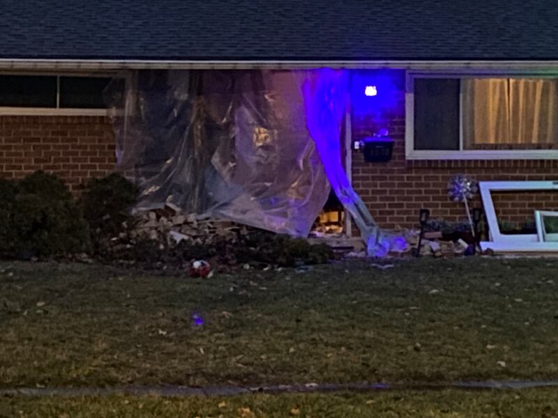 HUBER HEIGHTS — A local home was damaged after a vehicle crashed into the front door Tuesday morning.