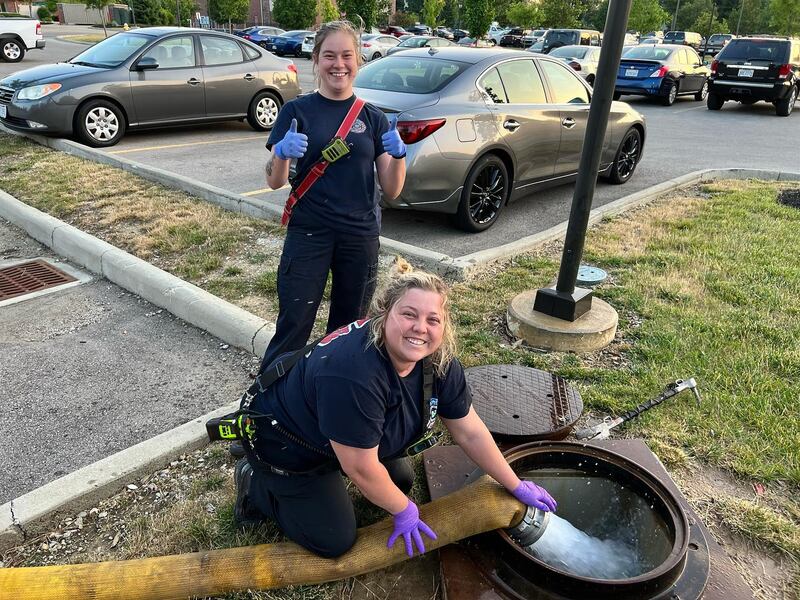 Photos posted on social media by the district show firefighters working in a storm drain.