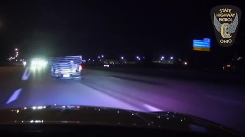 Cruiser camera video shows how a trooper was able to strike a wrong-way vehicle to finally get it to stop during an early Tuesday pursuit on Interstate 71 in Warren County.