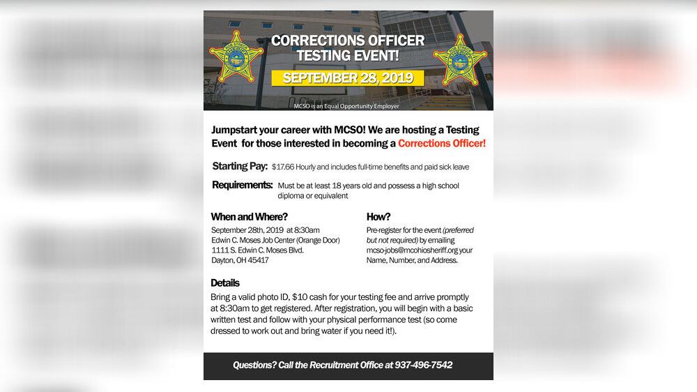 The Montgomery County Sheriff’s Office will be holding a testing event for those interested in becoming a corrections officer.