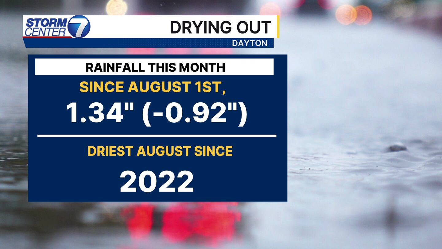 The cool air is also in combination with the dry air. August is Dayton’s third driest month on average after February and October, but this August has been below average rainfall-wise.