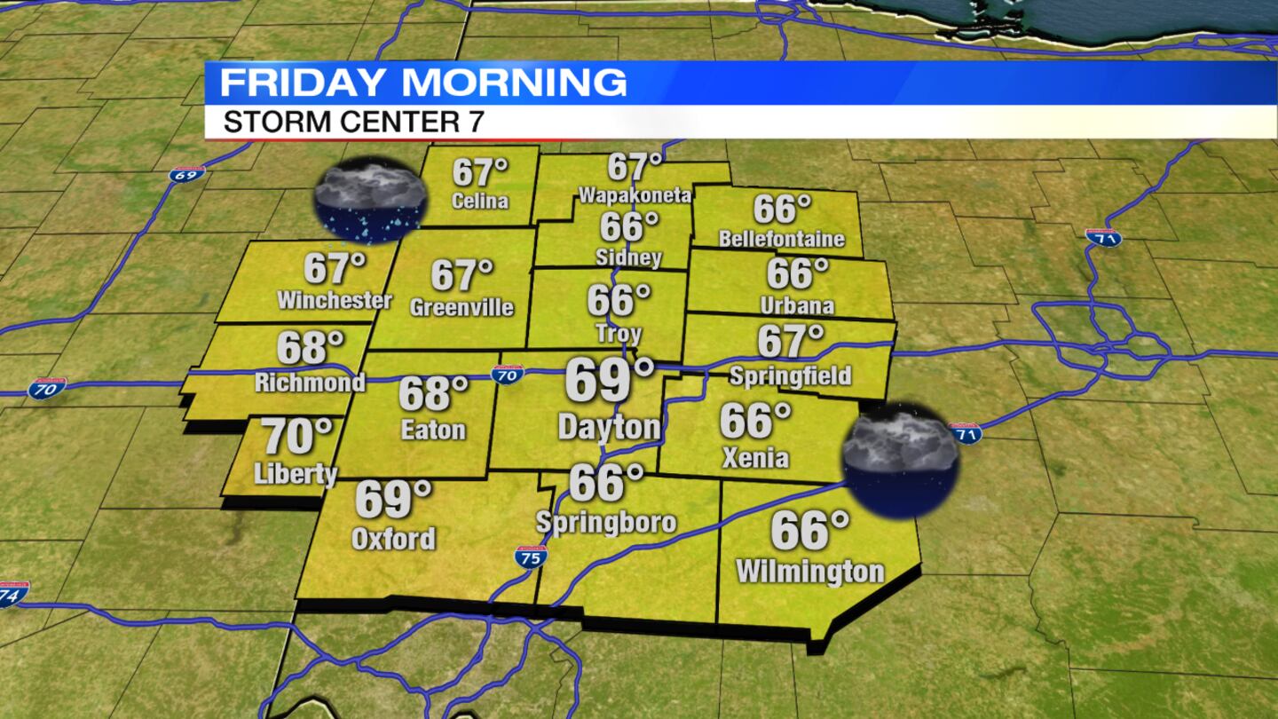 Friday: Expect a mix of sun and clouds along with passing showers and storms. Temperatures will climb back into the lower 80s.