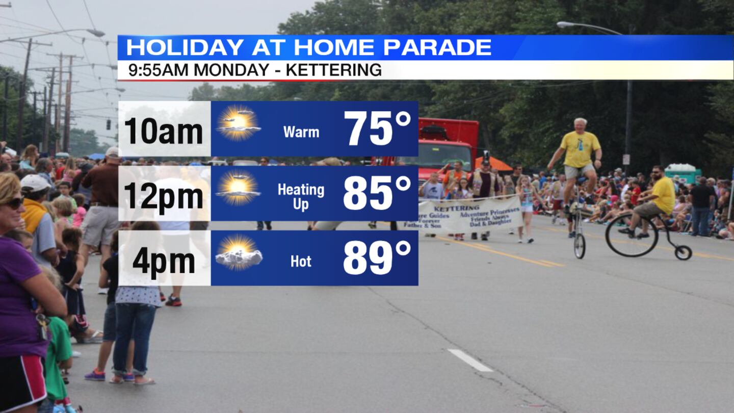 Monday: Mostly sunny, hot and muggy for Labor Day. Temperatures will soar to highs near 90 degrees; feeling like the middle 90s. Between parades and festivals, drinking lots of fluids and keep cool is suggested. Symptoms of heat exhaustion include feeling nauseous, dizzy or faint. If you feel these symptoms find a cool place quickly and if you do not recover within a short period of time, reach out for medical attention.