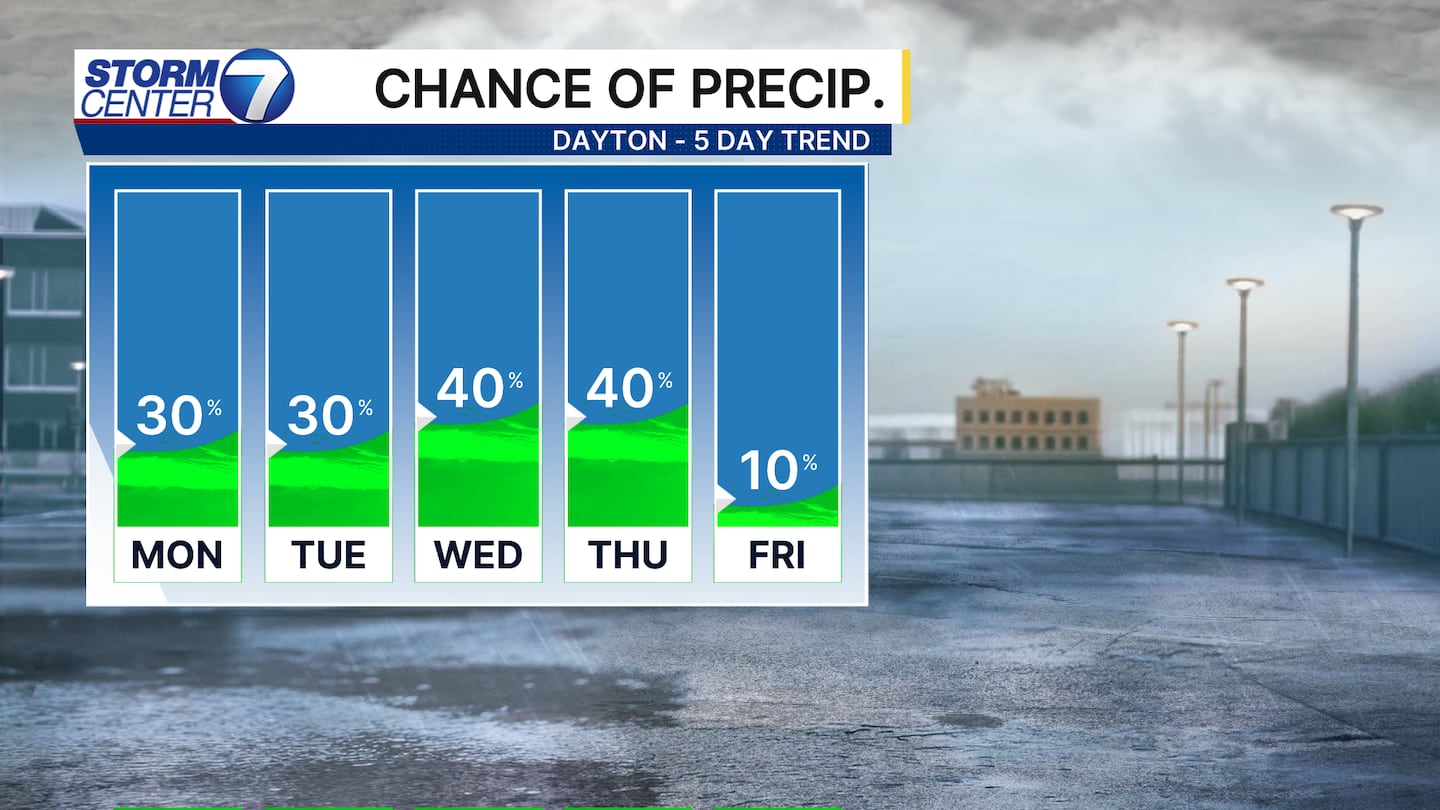 DAYTON — There are quite a few chances for rain this week, but not everyone will be impacted. Hey it’s Storm Center 7 Meteorologist Ryan Marando.