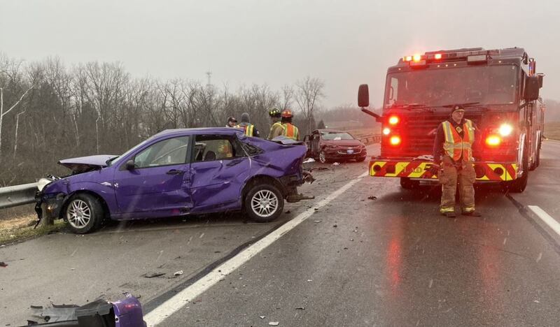 The crash happened around 6:40 a.m. between the East Dixie Drive and state Route 725 exits. A purple Ford Focus, driven by Donnie Wilson, 31, of Dayton was traveling south behind a truck that was driving slower when he tried to pass the truck on the right shoulder, state troopers said in a media release.