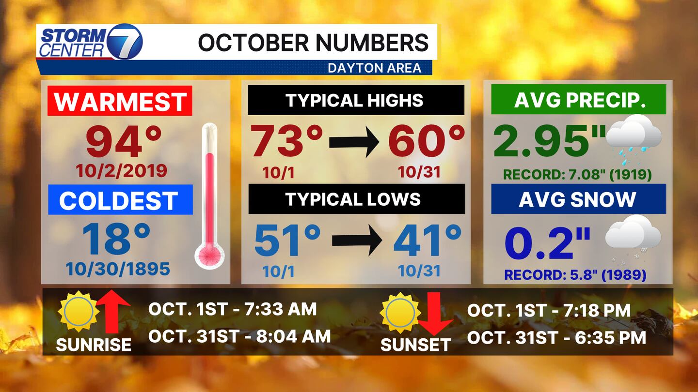 DAYTON — Welcome to October, everyone! Weather Specialist Nick Dunn here to break down some numbers from September and look ahead to what October typically brings us! I always enjoy looking at some of the detailed numbers to put a wholistic picture together of how the month prior shaped up!