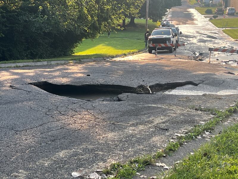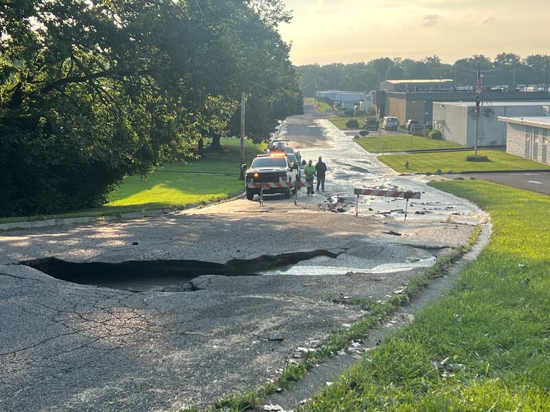 DAYTON — A road was damaged after a water main break in Dayton on Thursday.