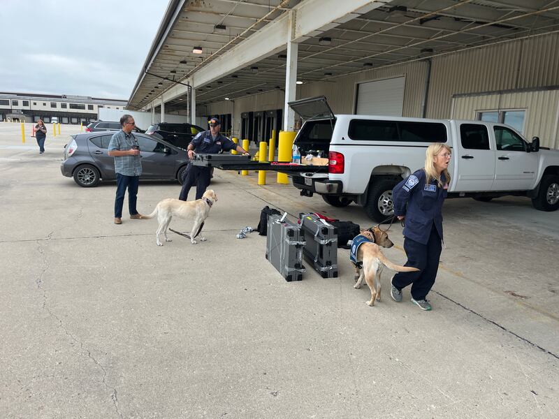 News Center 7 was there when the three human remains detection dogs, Melvin, Sunny, and Major, and their handlers, Heather Ferguson, Nick Fathergill, and Kim Veldheer, arrived back at their Vandalia headquarters Sunday morning.