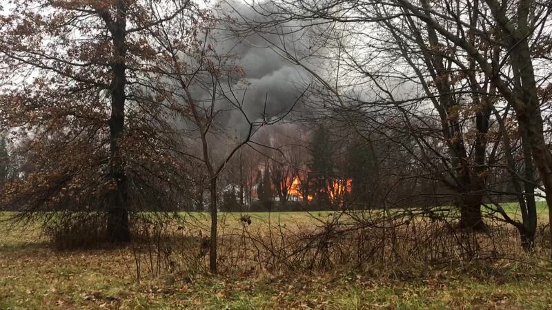 According to initial reports, heavy smoke was showing from the barn around 11:45 a.m.
